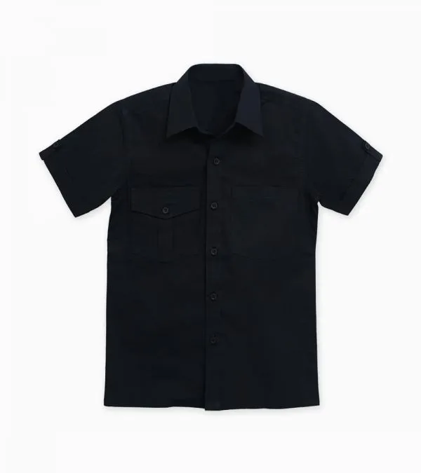 Your child will look adorable in this black button up shirts. Tie the button and your baby ready to go. It comes with a collar neckline and short sleeves.