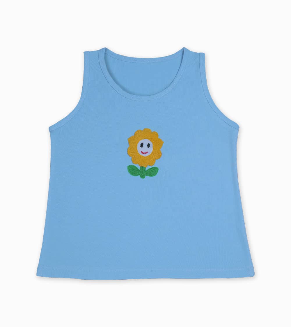With this comfortable and lovely tank top, you may put a smile on your cutie’s face. This patched flower tank top is crafted with a cotton jersey.